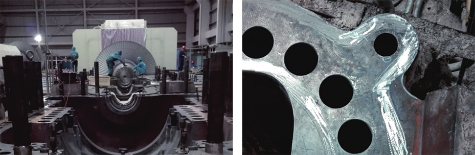 采用微弧焊接技術、上下缸對研等方式進行汽缸結合面漏汽修復,消除變形量。